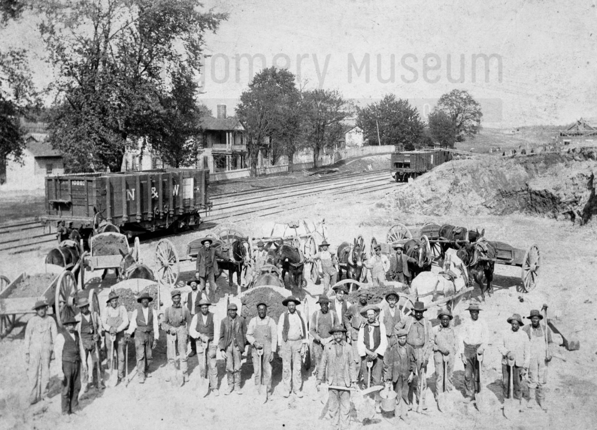 This 1904 photograph captures a work crew—Black and white men together—building the new passenger station for the Cambria, Virginia Depot. It’s a remarkable image of shared labor and community effort during a time of deep segregation.