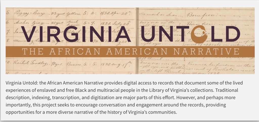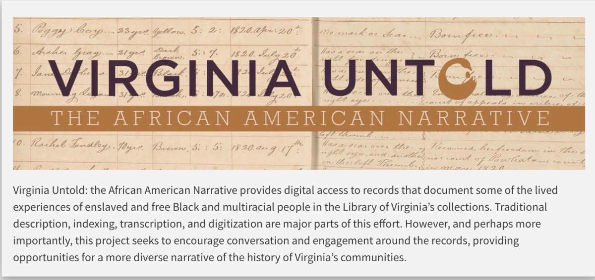 Don’t forget to scroll down the Virginia Untold Search page for additional online resources. Also, the Library holds a huge collection of other online resources that is growing.
