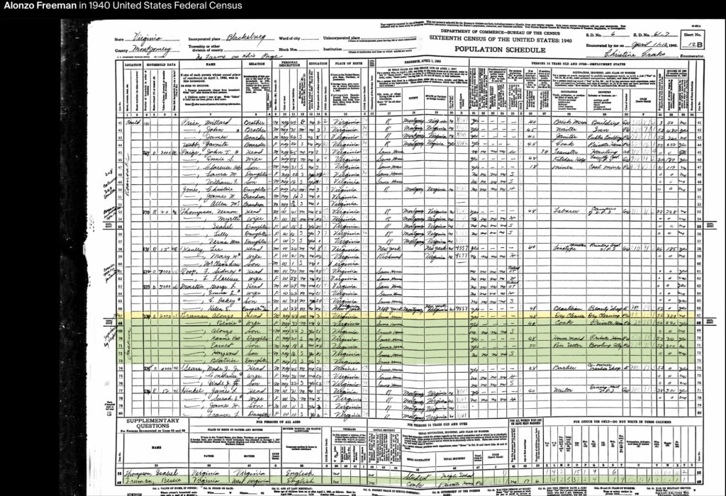 Freeman family in Blacksburg, Va on Jackson St (1st St) in US Census 1940.