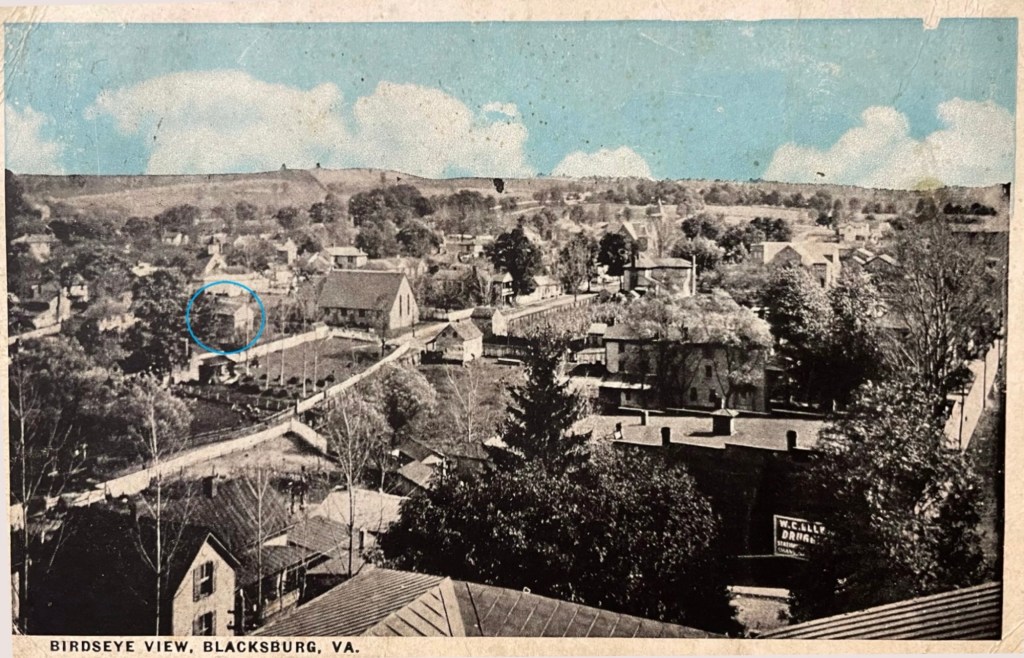 Location of the Freeman’s Home (postcard of Blacksburg prior to 1913, courtesy of Jody Booze-Daniels)