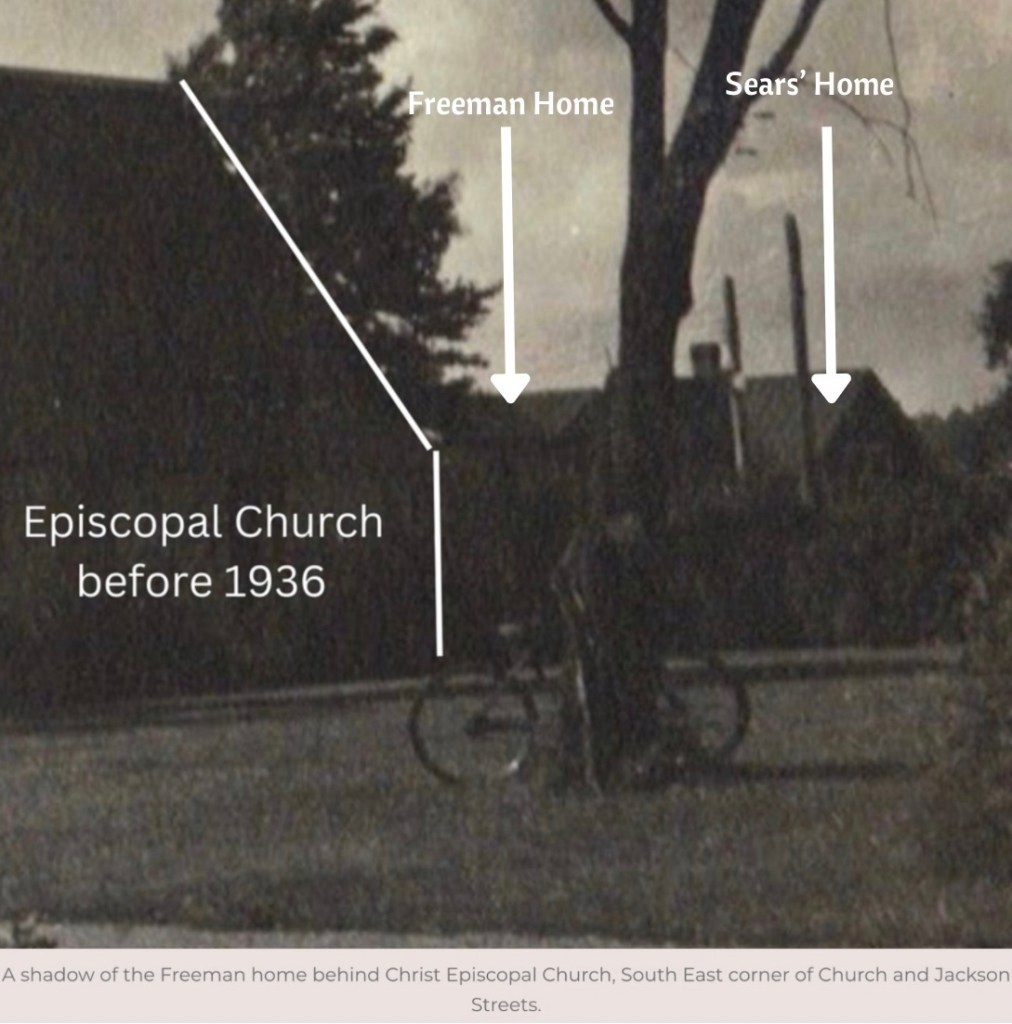 Freeman house is to the left of Christ Episcopal Church, Church and Jackson Streets, prior to 1930s.