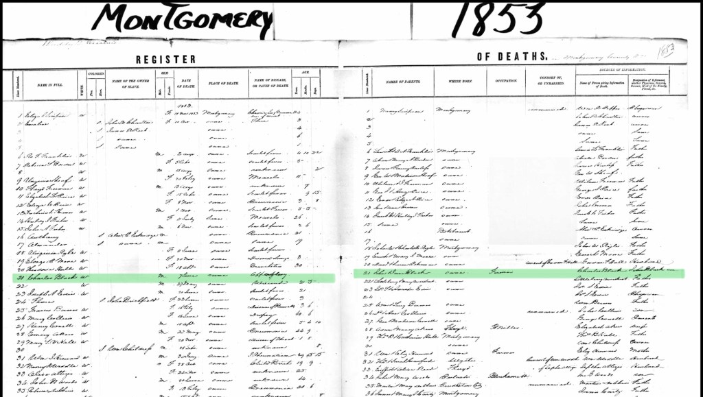 The purpose of this page is to document and connect these shared names, with the hope of bringing to light the lives of those too often lost to history and deepening our understanding of the enduring legacy of slavery in Montgomery County and beyond.