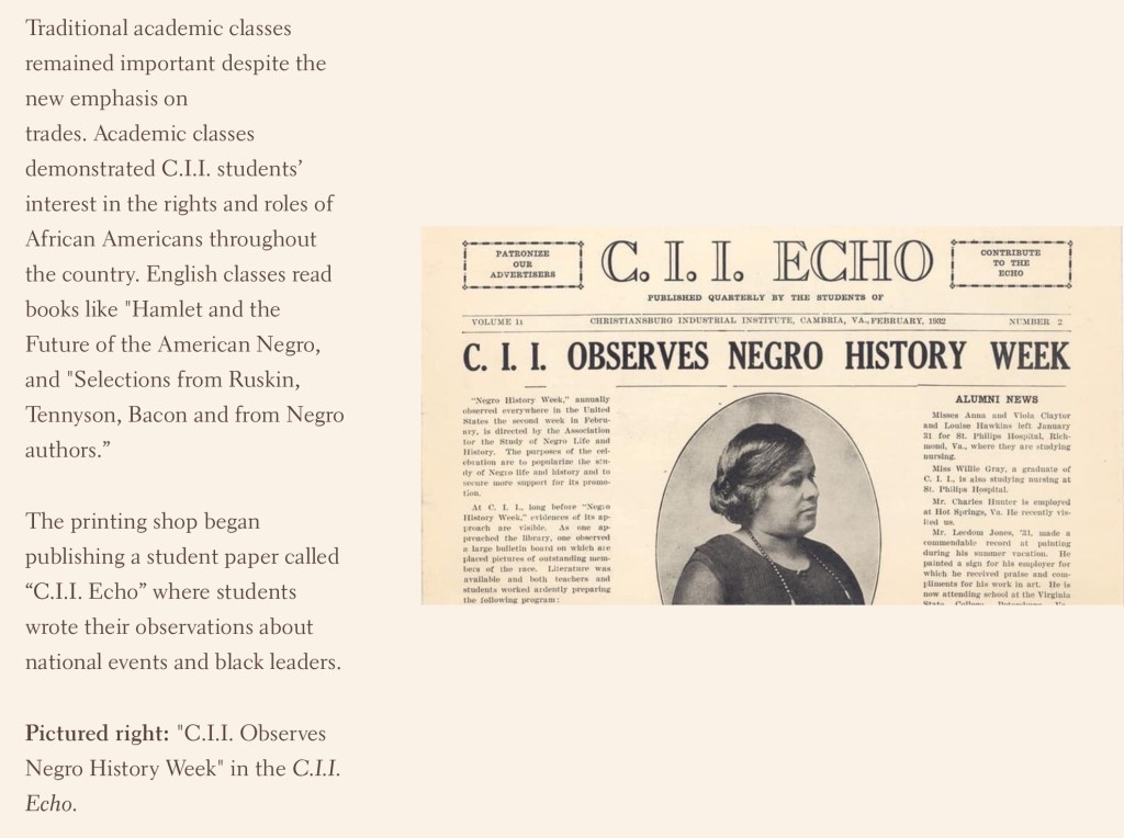 Alvin’s great-uncle, John Wynes Lester (1885–1961), taught, farmed and worked as a carpenter at Christiansburg Institute. He and his wife lived on campus until his death. He is buried in the school’s cemetery.