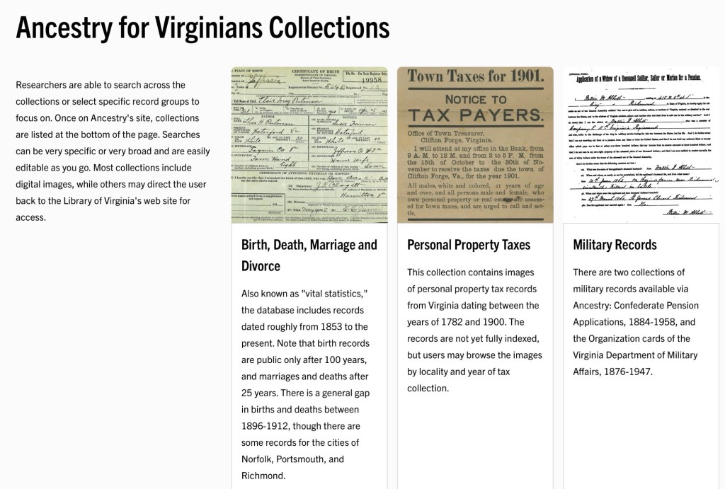 Explore the free digital holdings of theLibrary of Virginia. These rich collections of primary sources are invaluable for researching family history and for uncovering the stories that shape our shared past.